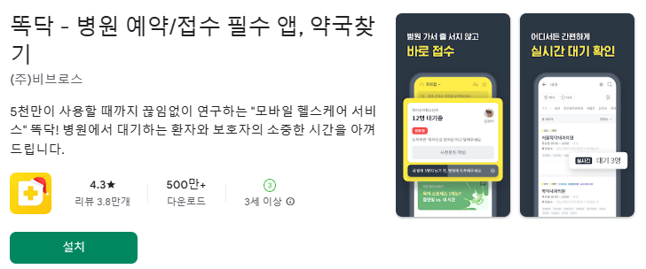 똑딱 앱은 주변 병원을 찾아 예약을 하거나 원하는 병원 이름을 검색해 예약을 할 수 있습니다. 현재 대기인원이 몇 명인지 알 수 있기 때문에 예약을 먼저 해두고 시간에 맞춰 병원에 방문하면 오래 기다리지 않고 진료를 볼 수 있어 편합니다.