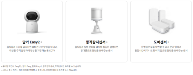 우리집 지킴이 스마트홈 Easy2는 이름에서 알 수 있듯이 일반 가정에서 쉽고 간편하게 사용할 수 있는 보안 서비스입니다.