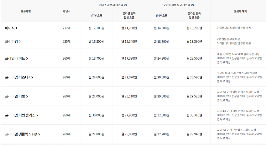 3. LG유플러스 인터넷TV 요금제와 사은품