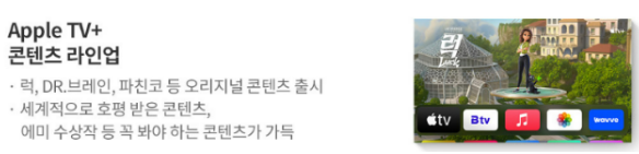 또한 SK브로드밴드 애플TV 셋톱박스를 하시면 애플 판 넷플릭스인 애플TV 플러스를 시청하실 수 있습니다.