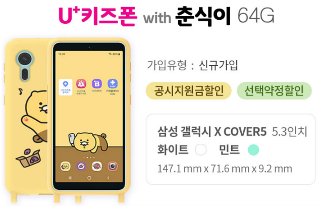 통신 3사의 키즈폰은 모두 갤럭시 X-Cover5 모델로 성능도 동일합니다.