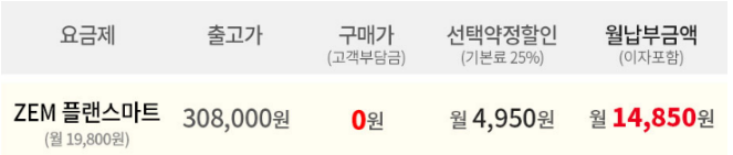 기기값 0원 + 매달 요금할인(25%) 적용해서 월 유지비용은 14,850원 입니다. 즉, 1년간 유지비용은 14,850원X12개월=178,200원 입니다.