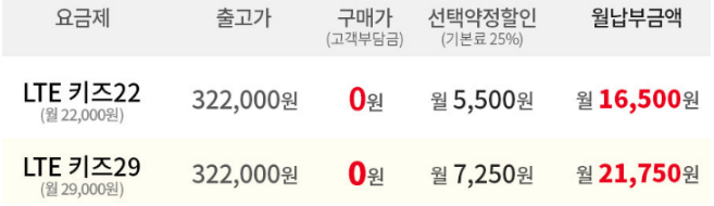 보통은 기종에 따라 공시지원금이 좋을지 선택 약정이 좋을지 정해지는데 키즈폰은 조금 다릅니다.