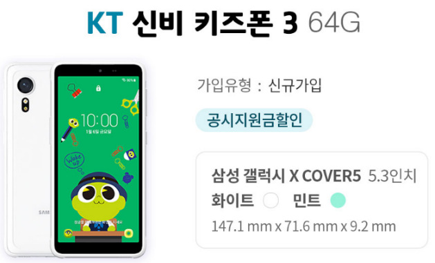 통신 3사의 키즈폰은 모두 갤럭시 X-Cover5 모델로 성능도 동일합니다.